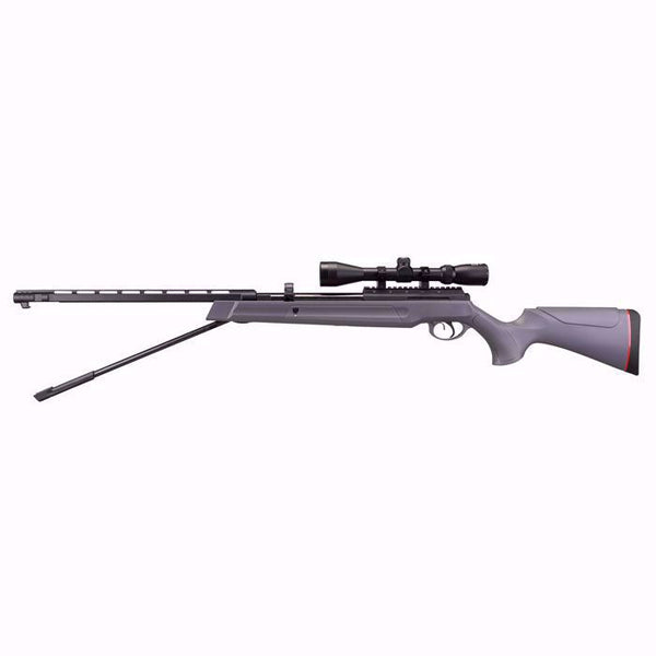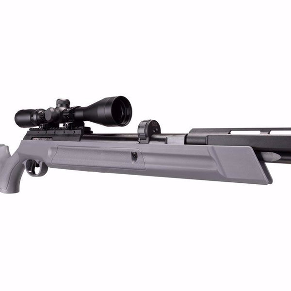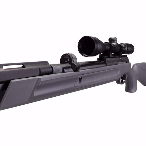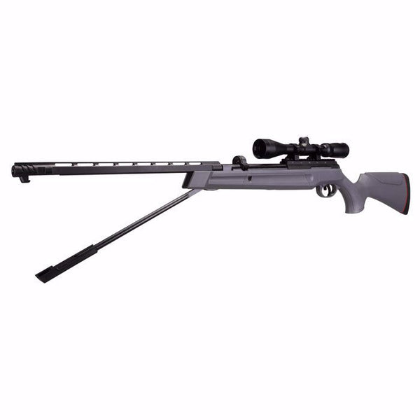 The evolution of airgunning continues with the Umarex Synergis Elite underlever .22 caliber pellet rifle. The Synergis Elite features reliable and powerful T.N.T. Gas Piston power, fixed barrel accuracy, 10-shot auto-indexing magazine, and a smooth underlever action. Install the included 3-9X40 airgun scope and load up the magazine with some RWS Pellets and hit the range. The Synergis Elite launches .22 caliber lead pellets at 800 FPS and is ready to hunt or plink with its all-weather gray polymer stock.